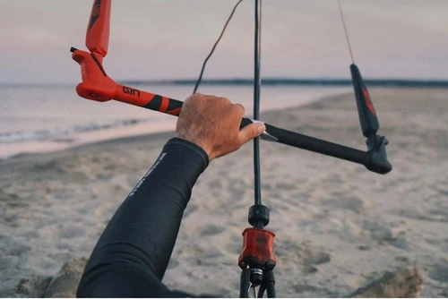 Gin Foil bar is characterized by different elements that make it precise and durable. It features a double pulley system with quick trim adjustment, which allows the rider to maintain maximum power while staying precise. The depower is made with high-density technology that reduces wear when sheeting in and out. It also allows you to maneuver and trim the kite easily. The chicken-loop swivel (swivel system) allows you to cancel any twists on the front flying lines and on the leash. To unwind the twists after a jump with one or more rotation(s), it is easy to turn the bar first to cancel the twist on the rear flying lines, then to pull the bar down.