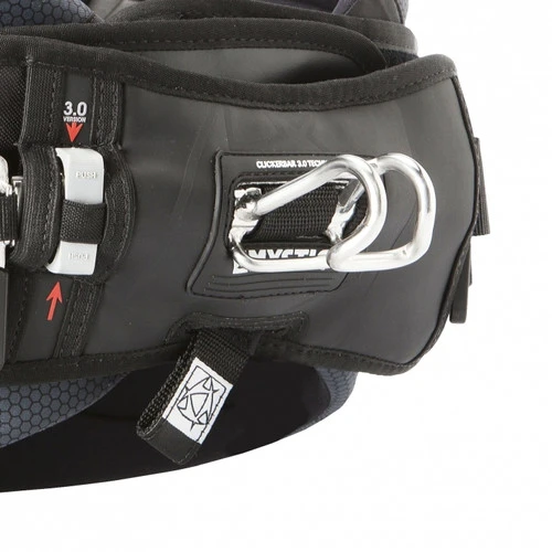 First, the edges of the harness are made of folded neoprene. The double neoprene ensures high comfort and prevents any discomfort from the stiffer parts of the harness. The Low Torque fixation is specially designed by Mystic to prevent the spreader bar from any upward rotation. The low Torque Fixation is integrated in the side of the spreader bar. The combination with the clickerbar system makes it the fastest quick release system on the market. With the clicker bar it really does just take one click and your ready to ride!